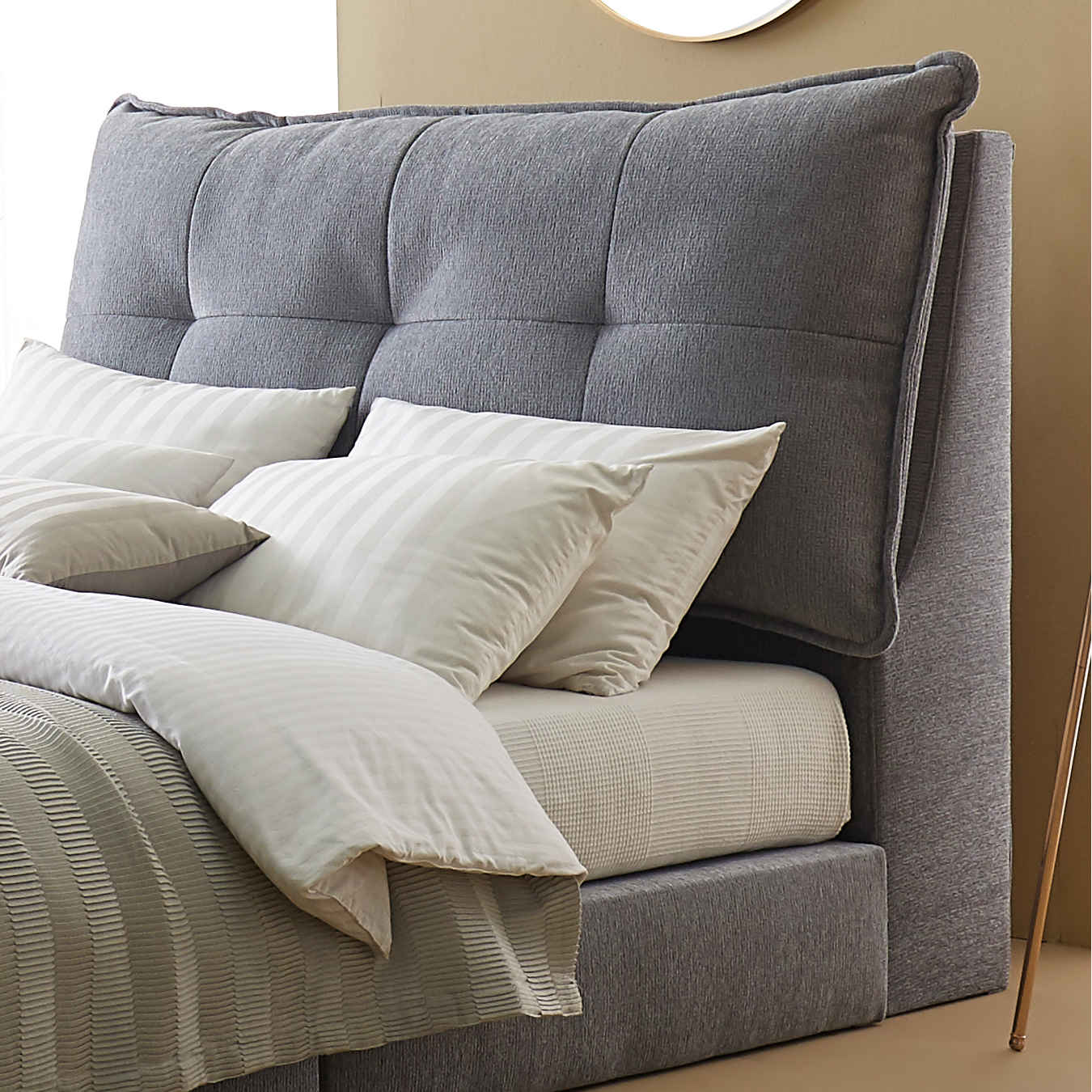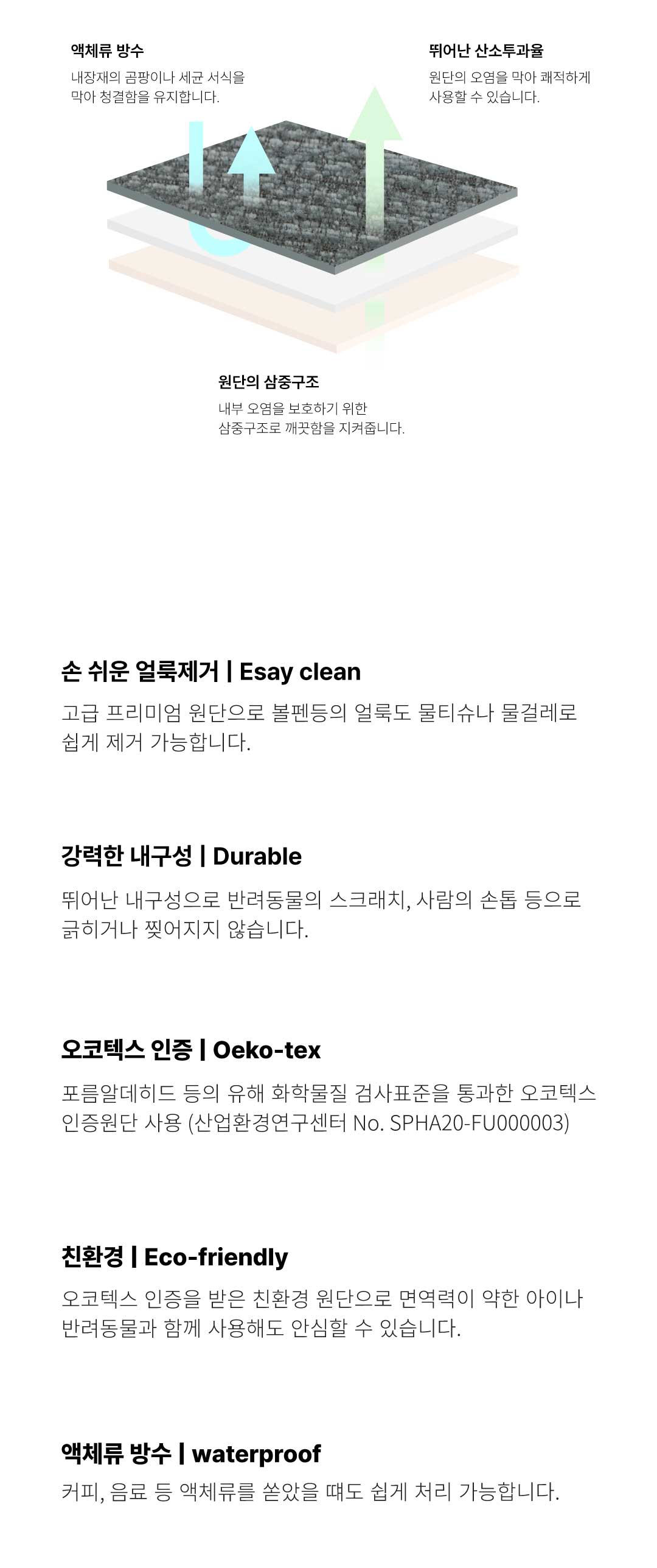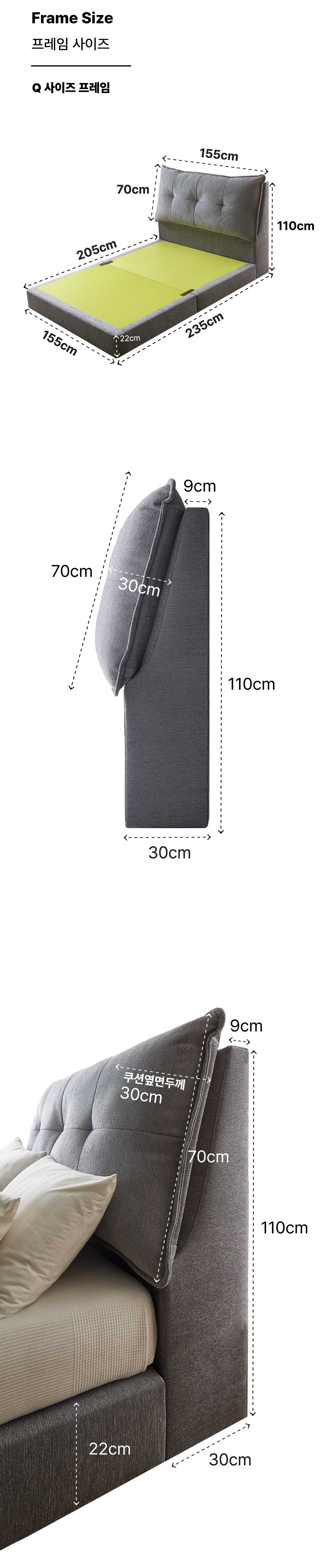 머리맡의 큰 쿠션이 주는 아늑함을 느낄 수 있는 '코지' 침대 프레임 애완동물의 발톱에 강하고, 얼룩이 잘 지워지며, 방수기능이 있습니다. 기능성 원단으로 만든 머리맡의 큰 쿠션은 침대 위에서 티비를 보거나 책을 볼때 편안하게 기대서 사용 할 수 있습니다.