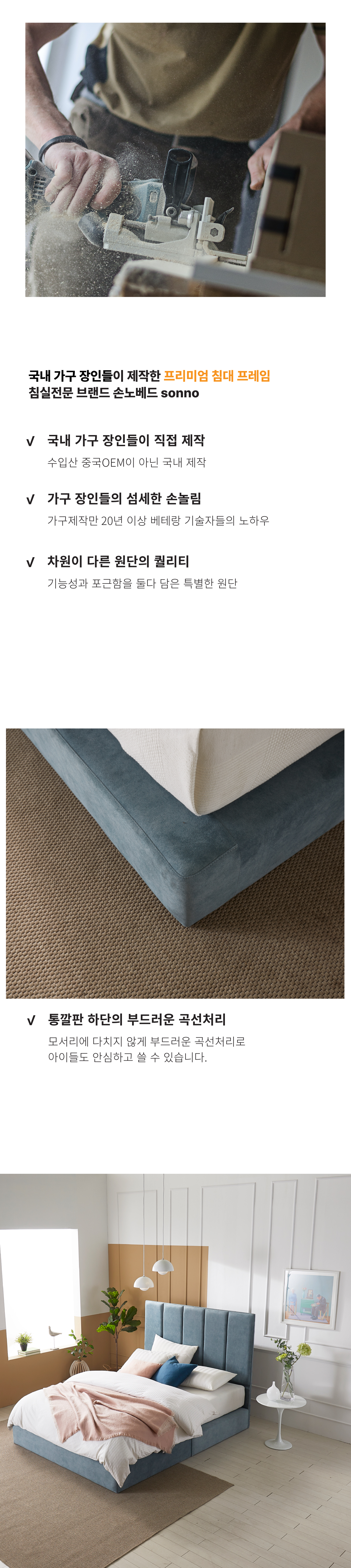 기능성 원단으로 깔끔하게 사용 할 수 있는 '노라' 심플하고 간결한 디자인에 컬러감으로 포인트를 준 침대 프레임 입니다. 애완동물의 발톱에 강하고, 얼룩이 잘 지워지며, 방수기능이 있습니다.