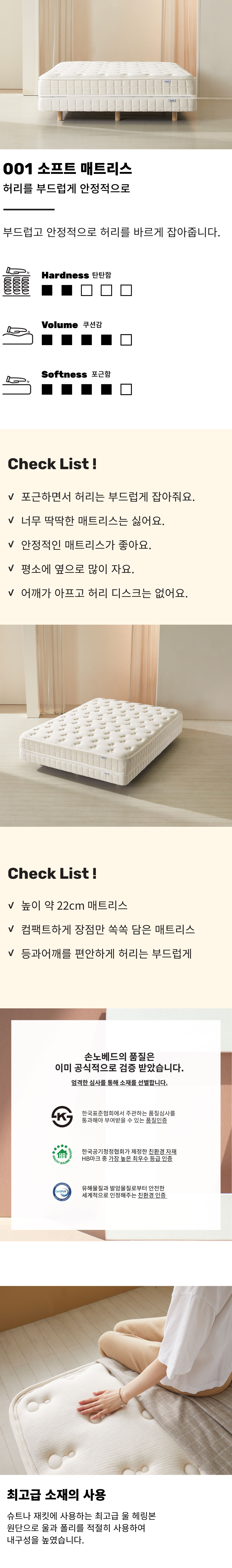 이런 사람에게 추천해요 !✔ 호텔 스타일 매트리스가 좋은 분✔ 호텔/스테이/풀빌라/료칸 매트리스✔ 포근하게 잡아주는 느낌을 좋아하는 분