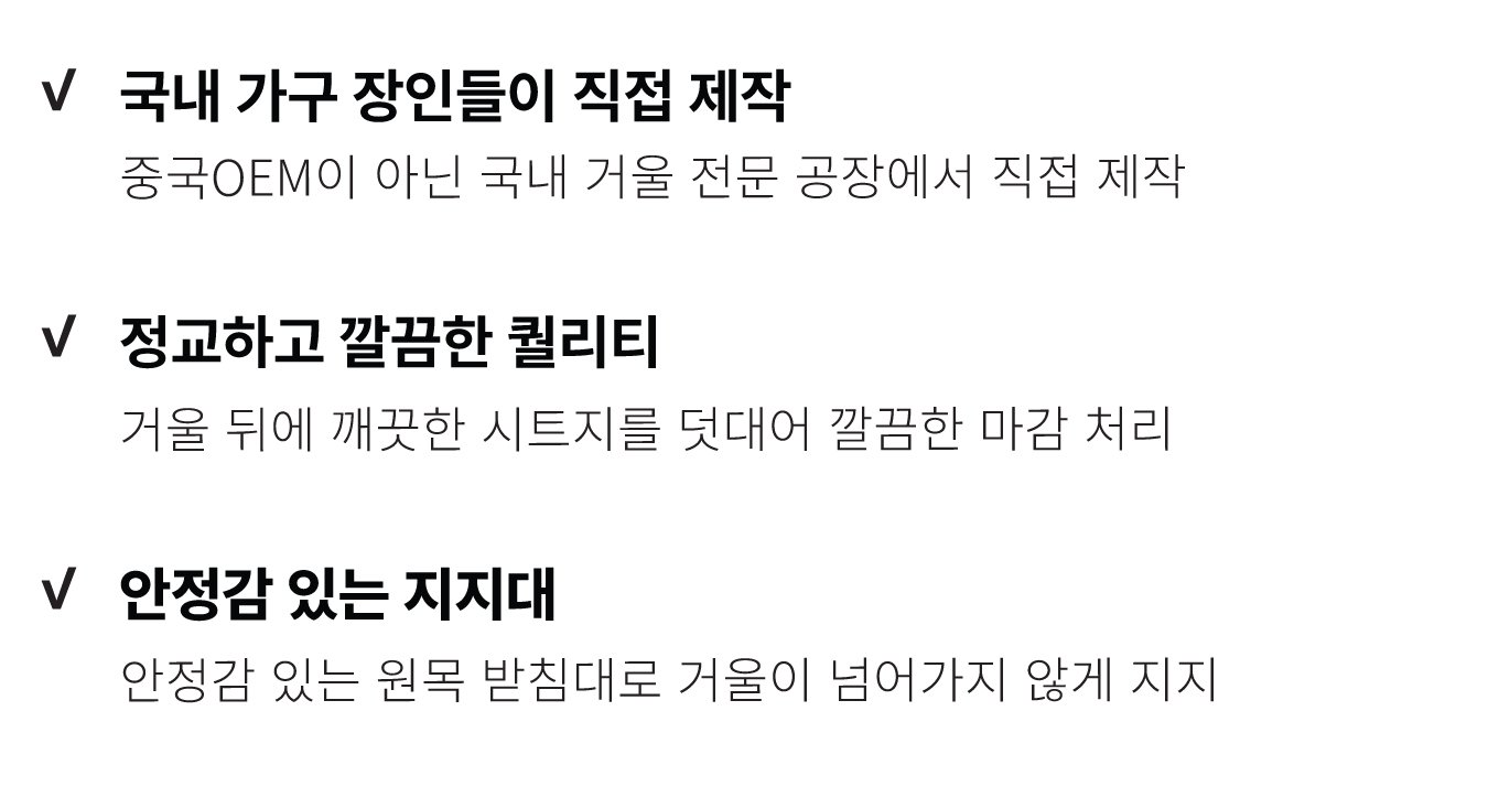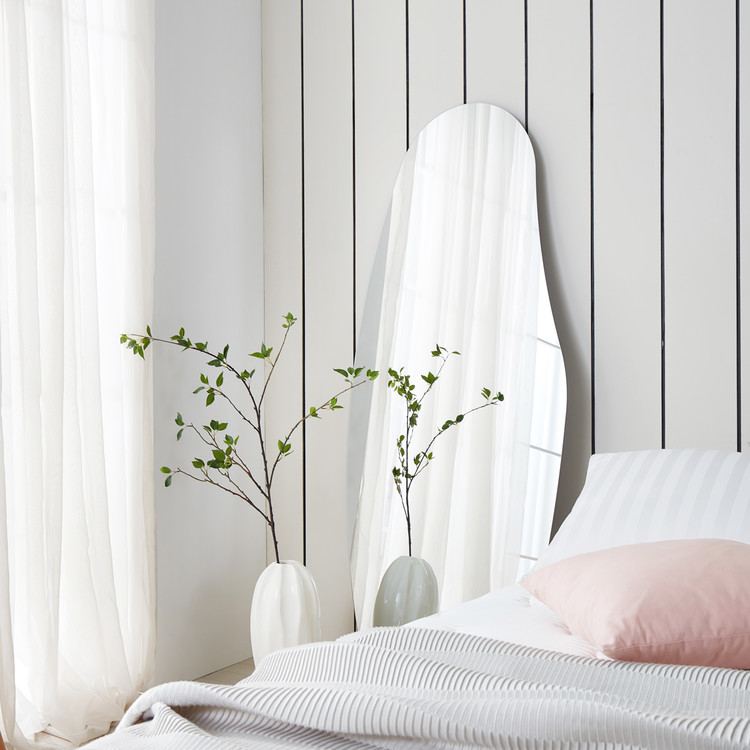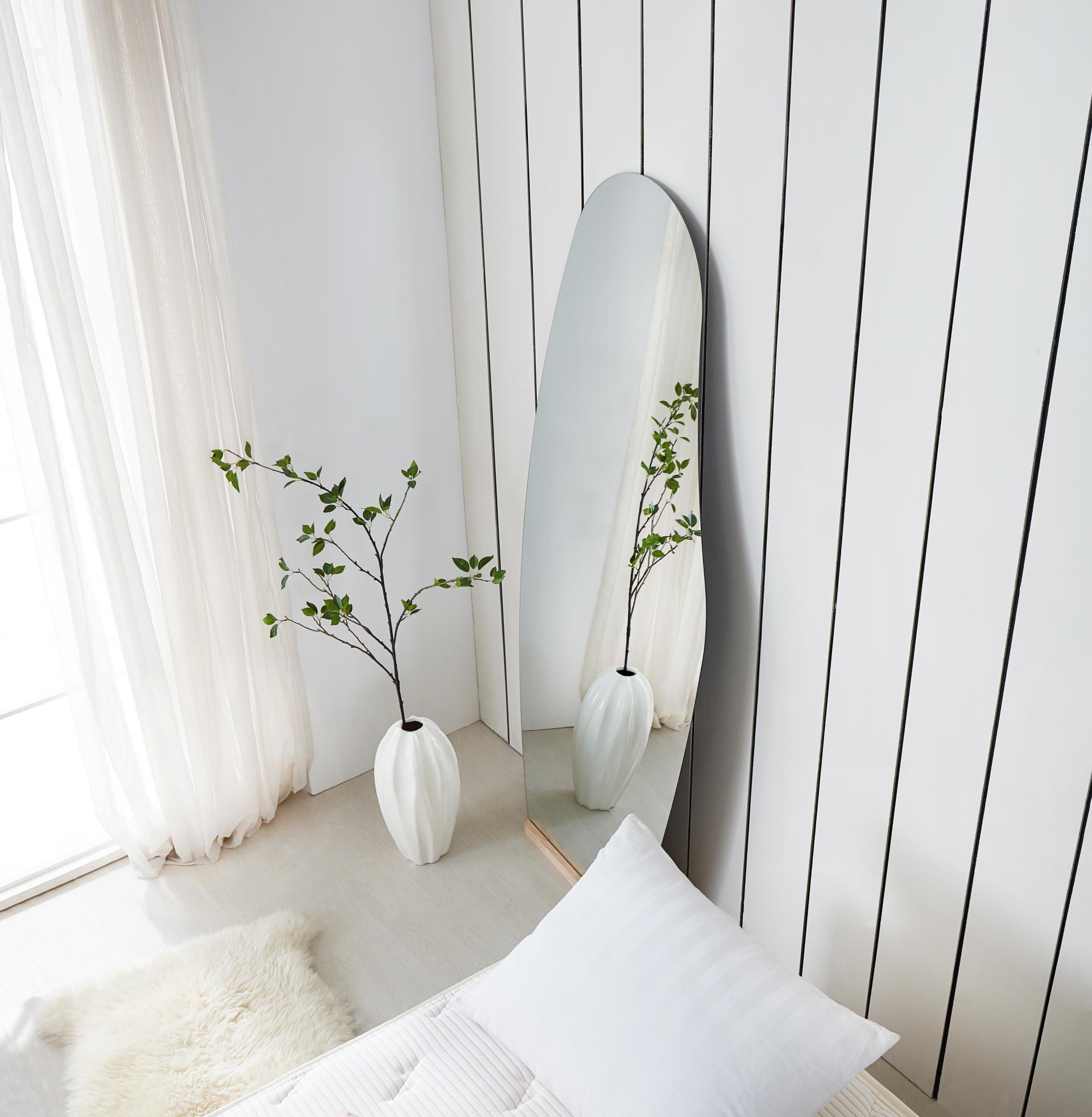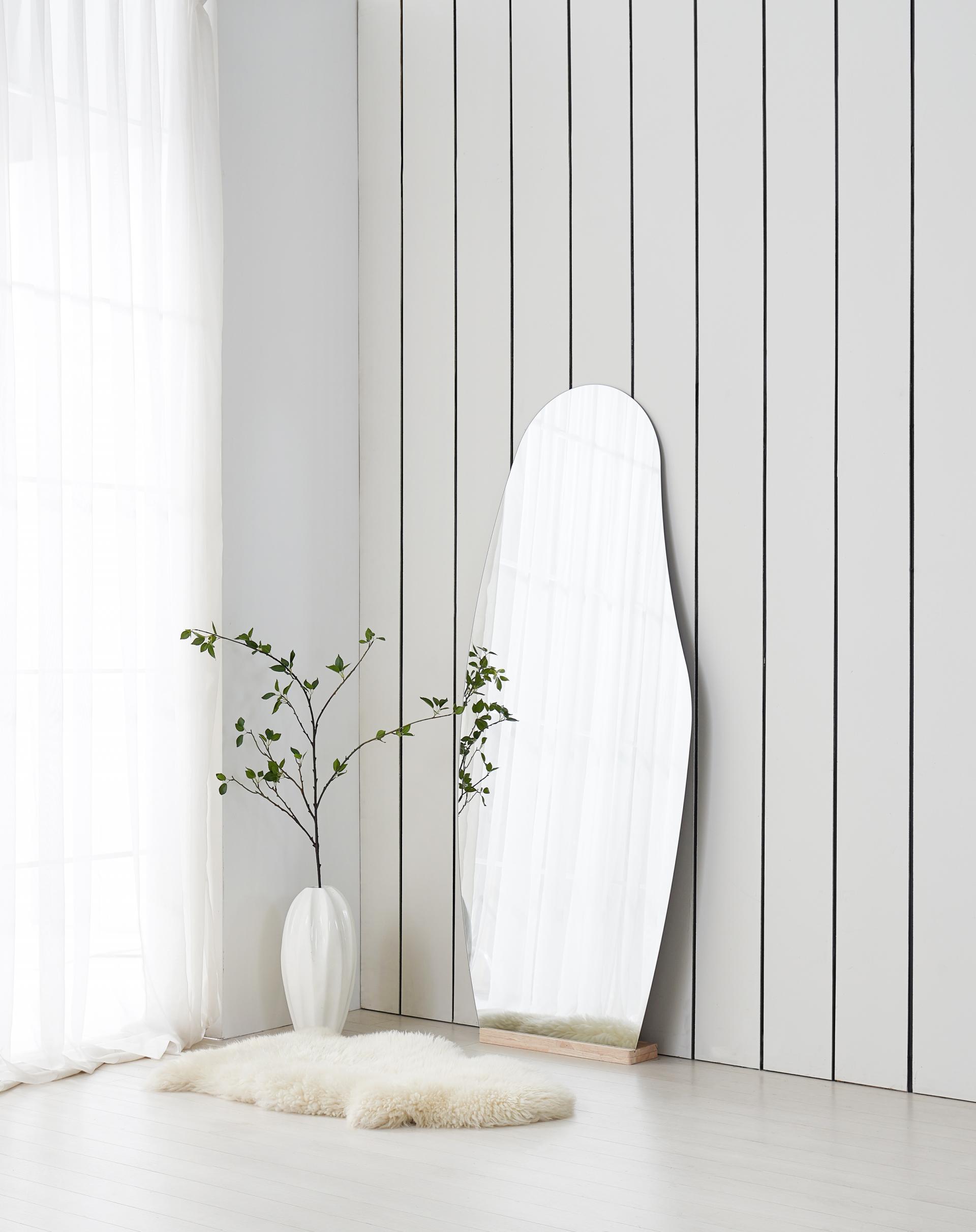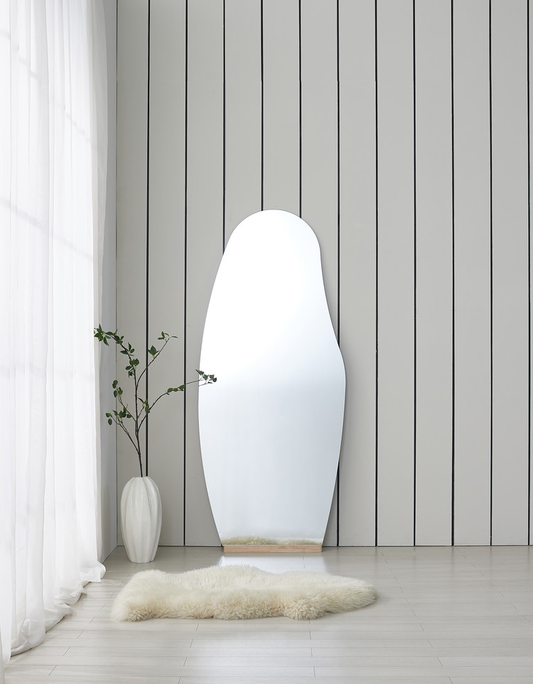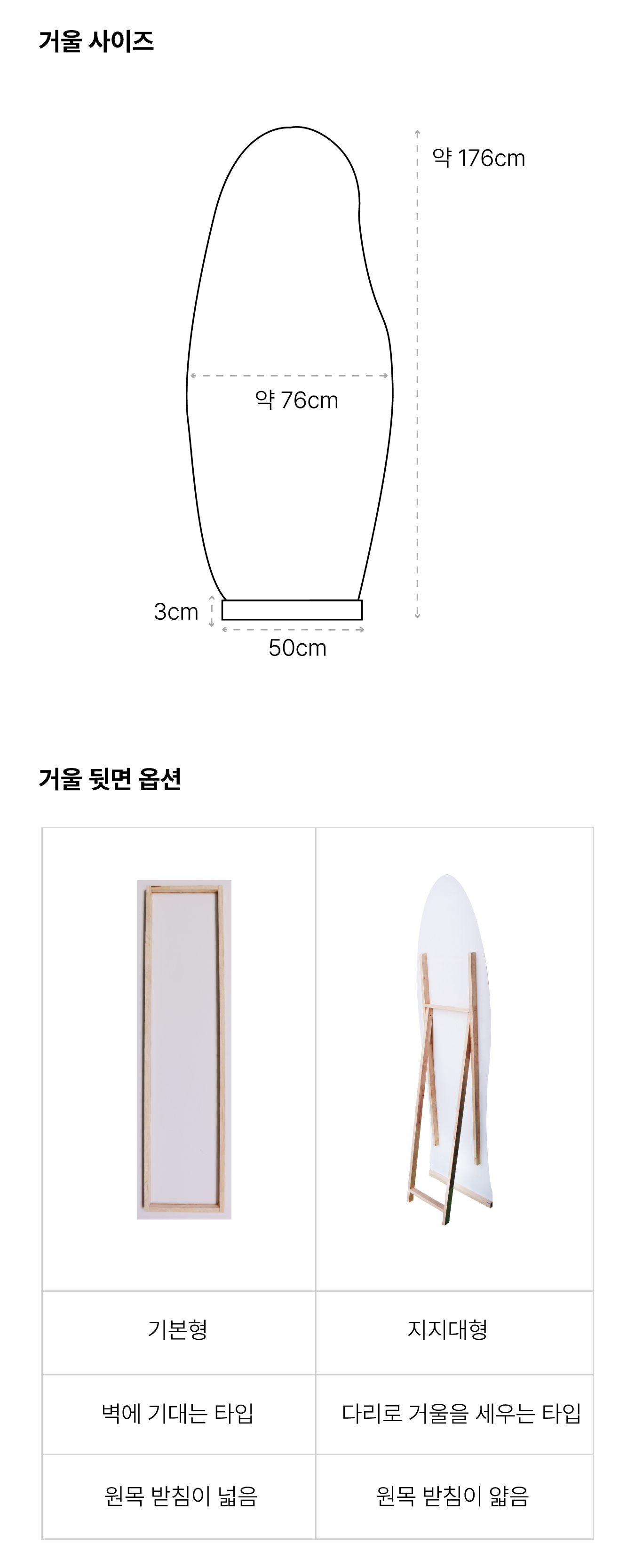 유니크한 비정형 모양의 전신거울입니다. 거울 뒷면의 형태에 따라 기본형/지지대형 두가지 타입입니다.