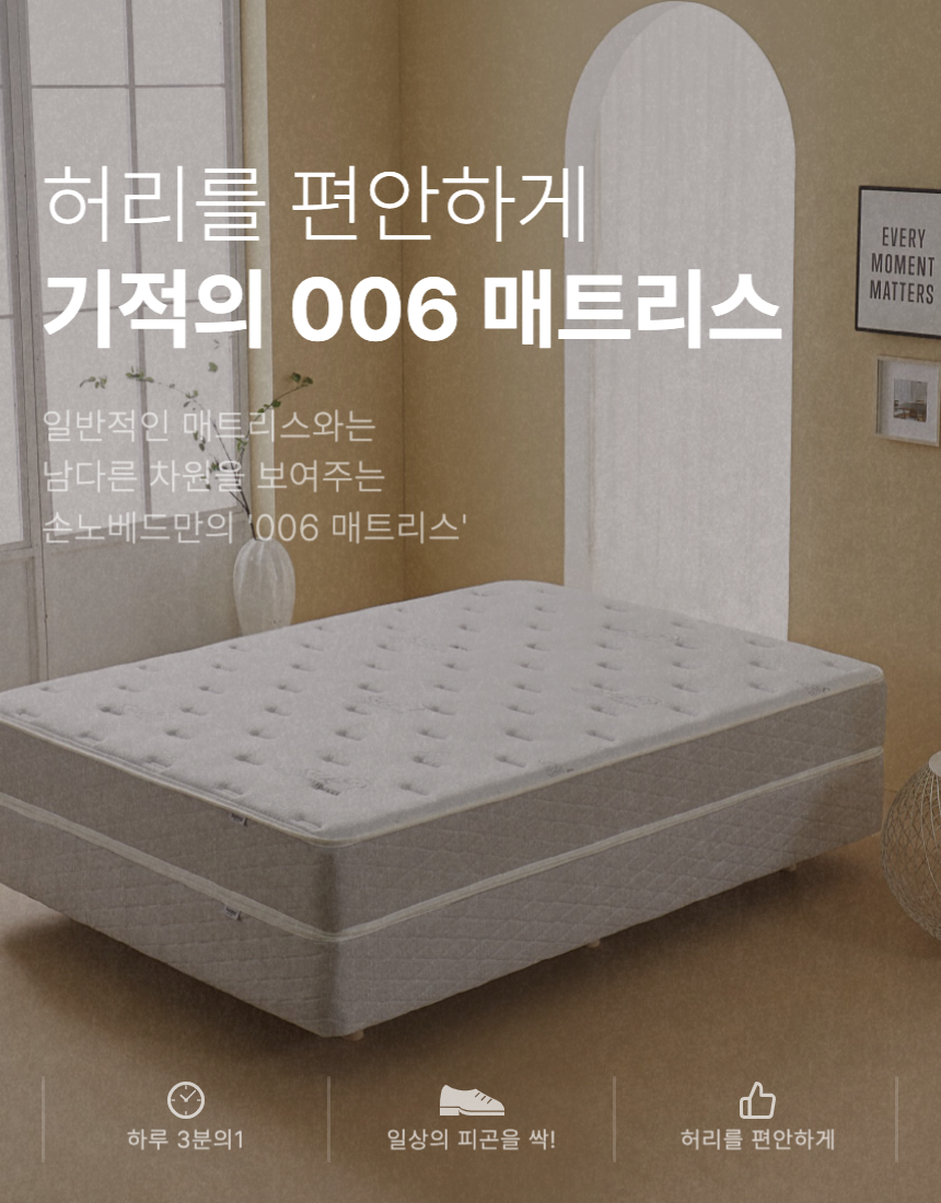 이런 사람에게 추천해요 !✔ 허리가 안 좋은 분✔ 바닥에서 자는게 편한 분✔ 탄탄한게 좋은 분탄탄함 : ◾ ◾ ◾ ◾ ◾쿠션감 : ◾ ◾포근함 : ◾ ◾** 매트리스 받침 (파운데이션) 별도 구매 **